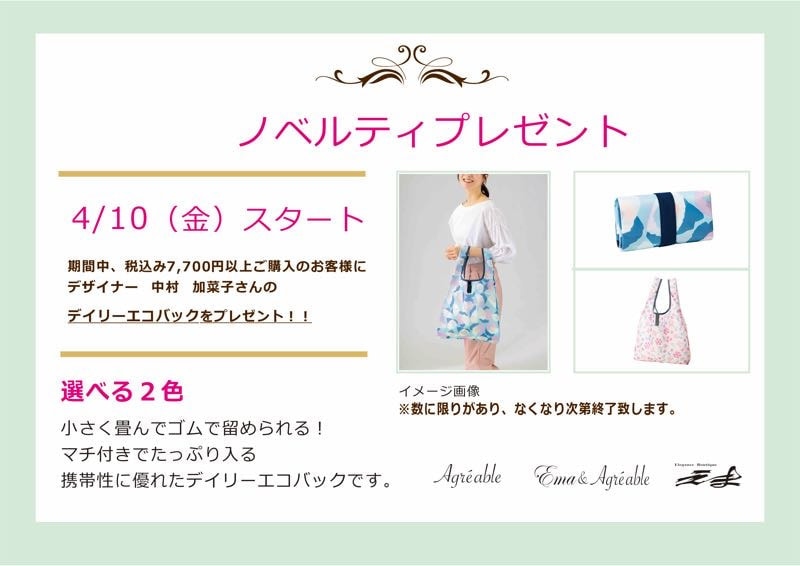 デイリーエコバッグをプレゼントいたします。